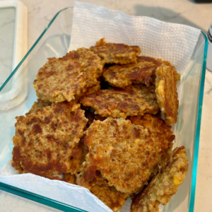 This would be a great recipe to serve babies starting at 6 months, once they’ve been safely introduced to the allergens in the recipe. For younger babies, typically it’s best to serve bigger pieces since those are easier for them to hold. Once they develop the pincer grasp (pointer and thumb pinching together), then you can start to give them smaller pieces.