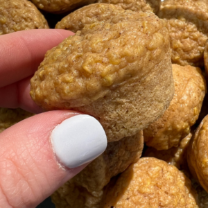 This would be a great recipe to serve babies starting at 6 months, once they’ve been safely introduced to the allergens in the pancakes. For younger babies, typically it’s best to serve bigger pieces since those are easier for them to hold. Once they develop the pincer grasp (pointer and thumb pinching together), then you can start to give them smaller pieces.