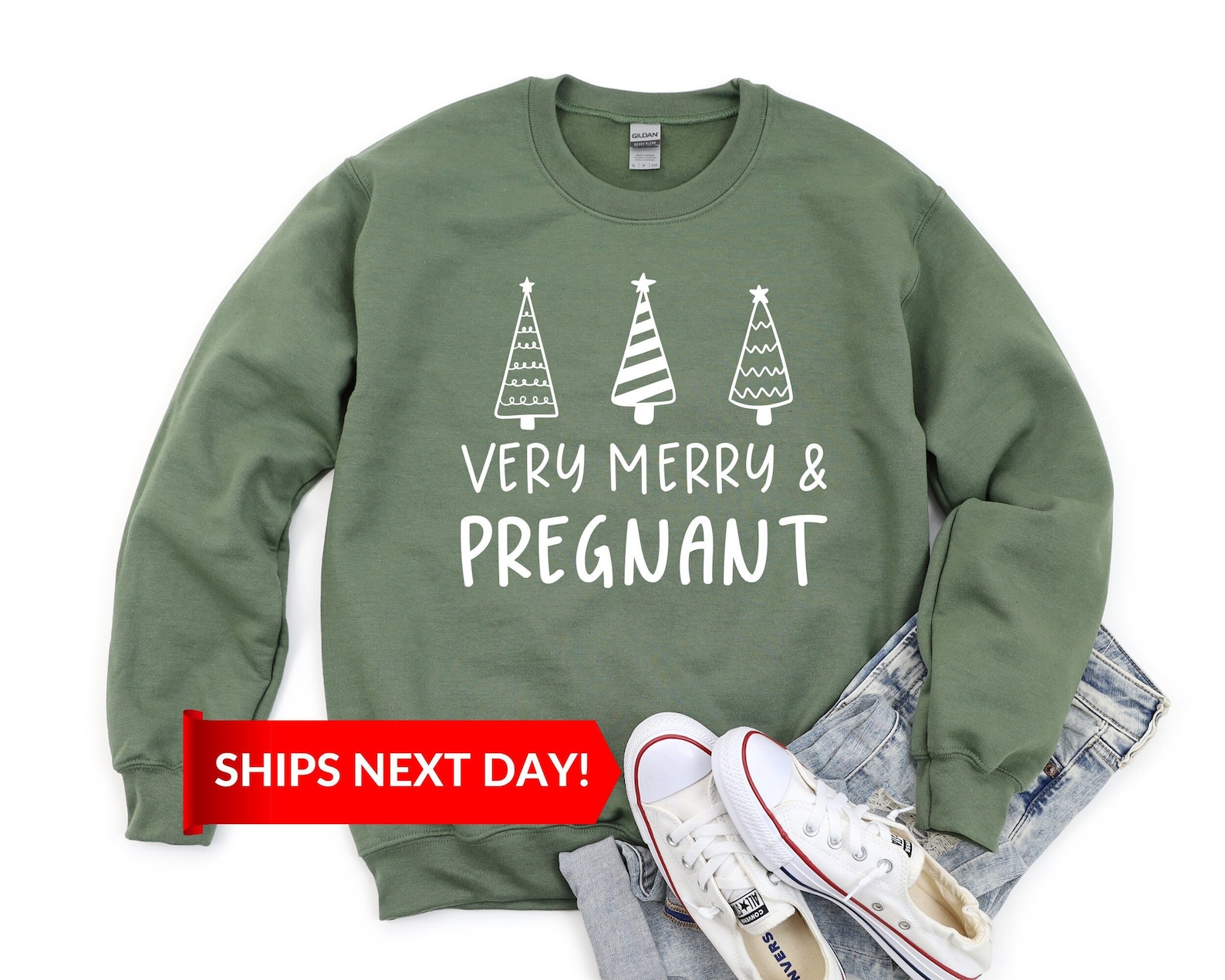 13. Simple Very Merry and Pregnant Sweatshirt